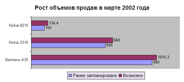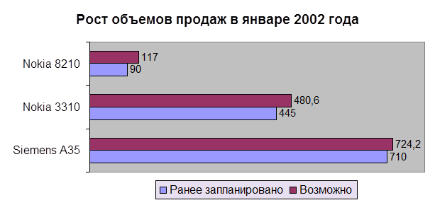 Было рассчитано, что в случае осуществления всех вышеперечисленных реформ количество продаж в 1 квартале 2002 года будет возрастать по сравнению с ранее запланированными, на основании опыта прошлых лет и последних тенденций на рынке средств сотовой связи, по следующей схеме: