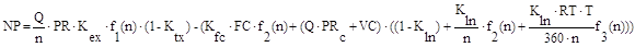 Шаг 1. Определение чистой прибыли экспортной сделки NP при вышеуказанных параметрах и ее зависимость от времени исполнения n.