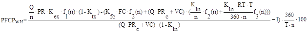 Рис. 8 График зависимости годовой рентабельности собственного капитала PFCPwn от времени исполнения n (Kln=0.5, RT=0.9 , b=0.025)