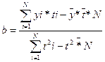 Y=a+b*t, где y – необходимое кол-во рабочих, t – порядковый номер динамического ряда, a,b – параметры уравнения.