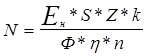 Z - коэффициент отношения средней освещенности к минимальной (Z = 1,1 для люминесцентных ламп);
