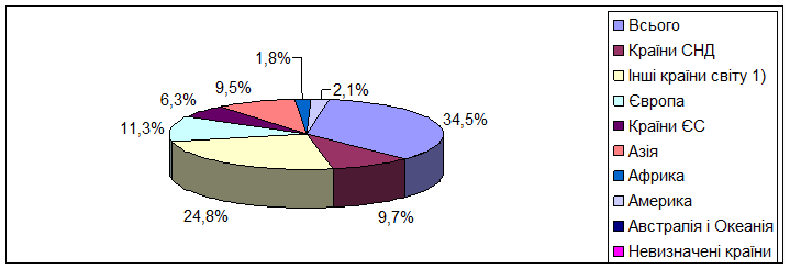 З діаграми можна помітити, що значна доля експорту приходить на країни СНД (здебільшого на Росію).