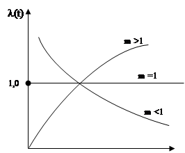 3) Интенсивность отказа l(t) – это условная плотность вероятности возникновения отказа не восстанавливаемого объекта, определенного рассмотренного момента времени, при условии, что до этого момента отказ не возник.