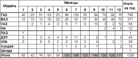Завод малолитражных автомобилей (ЗМА) из Набережных Челнов собрал за шесть месяцев 2002 года 19300 машин «Ока». (Таблица 1).