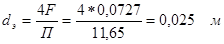Где F- проходное сечение межтрубного пространства – 0,0727 м2