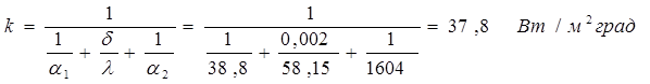 Где d = 0,002 м - толщина стенки труб и l=58,15 Вт/(м2 град)