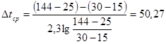 11. Определим среднюю логарифмическую разность температур сред в теплообменнике при противоточном движении: