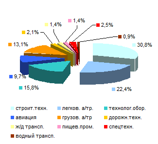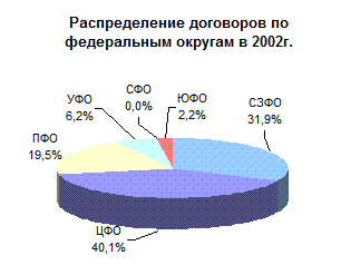 Распределение компаний тоже неравномерно, 80 % получивших лицензии компаний расположены в Европейской части России (более 50 % из них в Москве и Санкт-Петербурге), на Урале и Западной Сибири 15 %, на Дальнем Востоке и Восточной Сибири около 5 %. Большая часть поступлений от основной деятельности лизинговых компаний так же приходится на операции в крупных городах Центральной России и прежде всего в Москве и Санкт-Петербурге более 70 %[5].