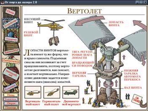 Британское издательство “Дорлинг Киндерсли”, известное своими великолепными книгами серии “Семейная библиотека”, начало выпуск интерактивных энциклопедий на русском языке. Первый компакт-диск — “От плуга до лазера” — представляет собой русскую версию популярной на Западе детской энциклопедии The Way Things Work 2.0, где занимательно рассказывается о множестве изобретений, сделанных человечеством начиная с 7000 г. до н. э.