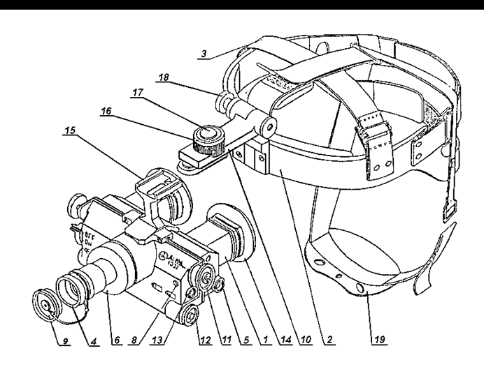 Псевдобинокуляр ПНВ-10Т представляет собой носимый наблюдательный прибор пассивного типа со встроенным ИК источником местной подсветки, обеспечивающий возможность наблюдения объектов и местности в ночное время за счет использования ЭОП. ПНВ-10Т (рис.3) имеет модульную конструкцию, в основу которой положена схема вакуумного ЭОП. В псевдобинокуляр встроен осветитель, представляющий собой самостоятельную сборочную единицу, главными элементами которой являются ИК диод и линза, формирующая энергетический пучок излучения. Питание ЭОП и ИК диода может осуществляться от бортовой сети транспортного средства через ПНН.