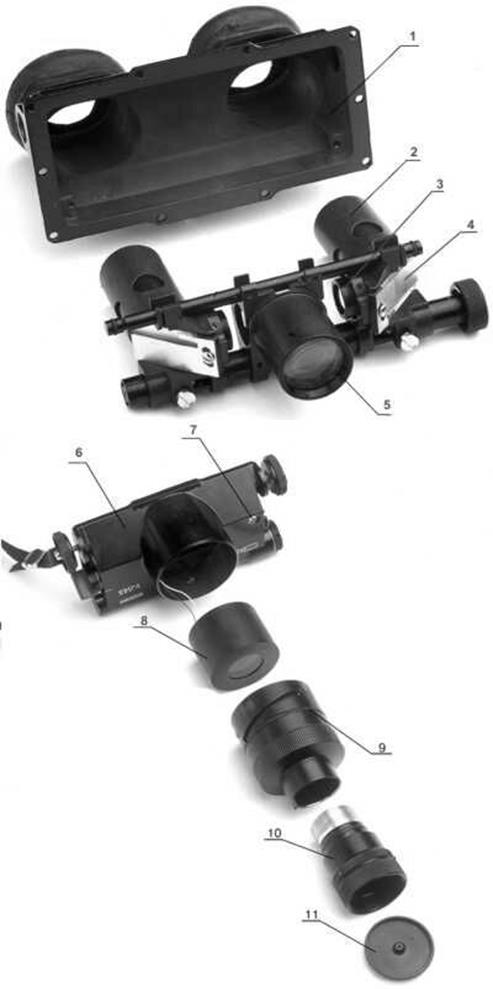 4 - зеркало; 5 - коллиматор (лупа) с призмой; 6 - корпус ОНВ;