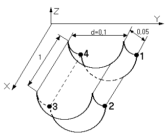 На рисунке 4 представлена рабочая зона рабочего органа. Из данного рисунка видно, что четыре точки позиционирования рабочего органа отмечены цифрами 1,2,3,4.