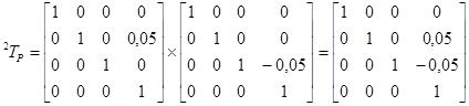 Произведя необходимые подсчёты, как в предыдущем случае получим однородную матрицу преобразований для второй точки: