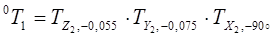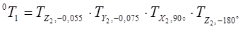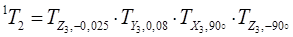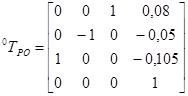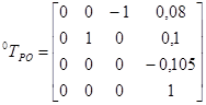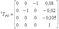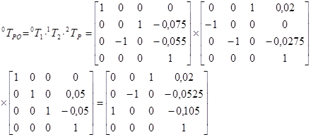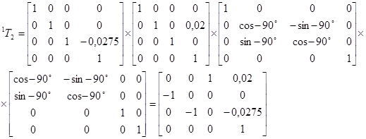 Определение однородной матрицы преобразования для второй точки позиционирования рабочего органа: