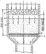 1- колосниковая решетка; 2-постель; 3-слой агломерирующей шихты; 4-зона спекания; 5-слой агломерата