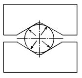При протяжке круглого сечения используется вид протяжки с круга на круг (рис. 6) в вырезных бойках. Силы направленные к осевой линии заготовки способствуют более равномерному течению металла и устранению возможности образования осевых трещин.
