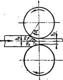 Путем простейших вычислений можно найти, что ∆h = D(1-cosα), т. е. абсолютное обжатие увеличивается с увеличением диаметра валка D и угла α. Угол захвата α при прокатке в насеченных валках составляет 27 — 34°, при прокатке сортового материала 22 — 24°, при горячей прокатке листов 15 — 22°, при холодной прокатке 3—8°.