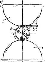 При поперечной прокатке (рис. 135, а) валки 1 вращаются в одном направлении и оси их параллельны, а заготовка 2 деформируется ими при вращении вокруг своей оси. Радиус заготовки_ за один цикл (полоборота заготовки) уменьшается на величину радиального обжатия ∆r