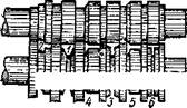 Сортовые станы предназначены для прокатки сортовых и фасонных профилей. Калибровка валков сортовых станов производится с учетом наибольшего обжатия при каждом пропуске, чтобы количество пропусков было наименьшим. На рис. 137 приведена калибровка валков для прокатки тавровой балки. Калибры пронумерованы в порядке последовательности обжатия заготовки. В соответствии с размерами проката и диаметра валков сортовые станы делят на крупносортные (диаметр валков D= 500:750 мм), среднесортные ( D= 350:500 мм) и мелкосортные ( D= 250:350 мм). У сортовых станов не одна, а несколько рабочих клетей.