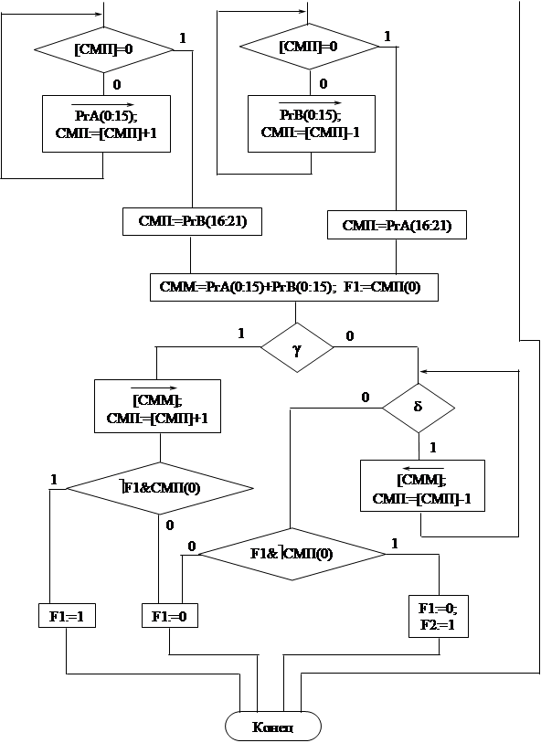 СМП:=РгА(16:21)+ ù РгВ(16:21)+1 |