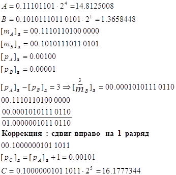 При сдвиге мантиссы числа В получается погрешность, равная: