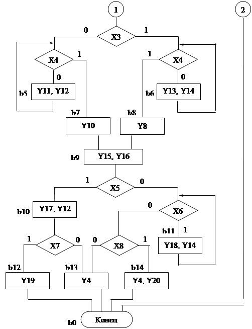 Ti – разряды СМП, Zi – разряды СММ. Условия X5 и X6 соответствуют условиям g и d в блок-схеме.
