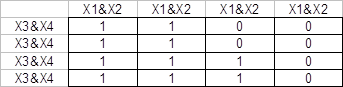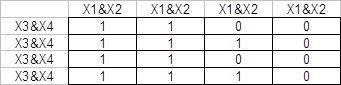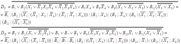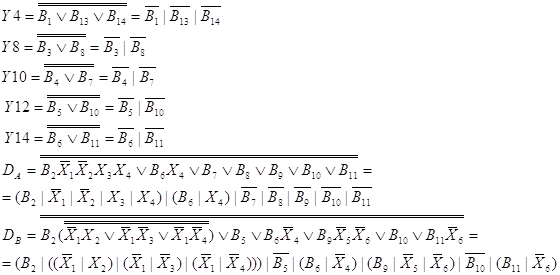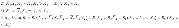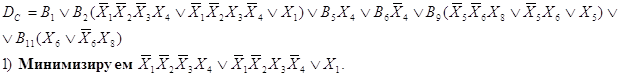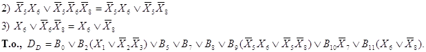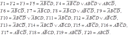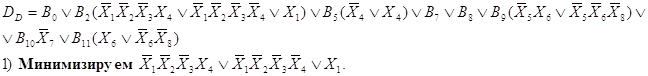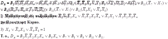 Заменим комбинации ABCD на Bi (например, B12 = A&B&ùC&ùD) и будем минимизировать выражения в скобках.![]()