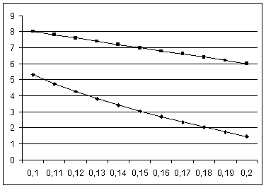 Предварительно выбираем характеристику наматывателя в виде прямой, проходящей через точки Тнач =8 Н и Ткон =6 Н.
