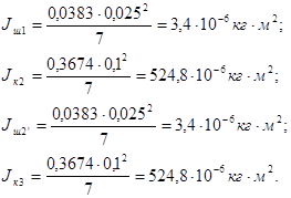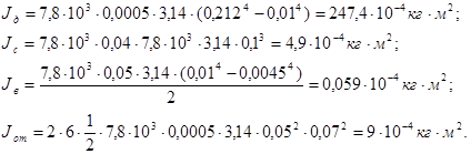 Общий момент инерции вращающихся частей наматывателя определится в этом случае из выражения (4.17), т. е. В него будет входить Jрул – момент инерции полного рулона, который найдем по формуле (4.18). В нашем случае, если учесть, что q=7. 10-3 кг/м для 35-мм киноленты,