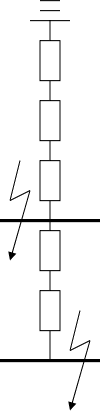 В данном примере расчеты дуговых КЗ выполняются с использованием понижающего коэффициента Кс, поэтому переходные сопротивления контактов, контактных соединений кабелей и шинопроводов в расчетных выражениях для определения суммарного активного сопротивления R не учитываются, эти сопротивления учтены при построении характеристик зависимости коэффициента Кс от полного суммарного сопротивления до места КЗ.