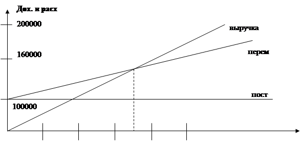 Точка безубыточности показывает объем производства при котором доход равен издержкам производства.