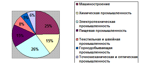 Рис.1. Распределение трудящегося населения ФРГ по отраслям промышленности (основные отрасли экономики ФРГ)