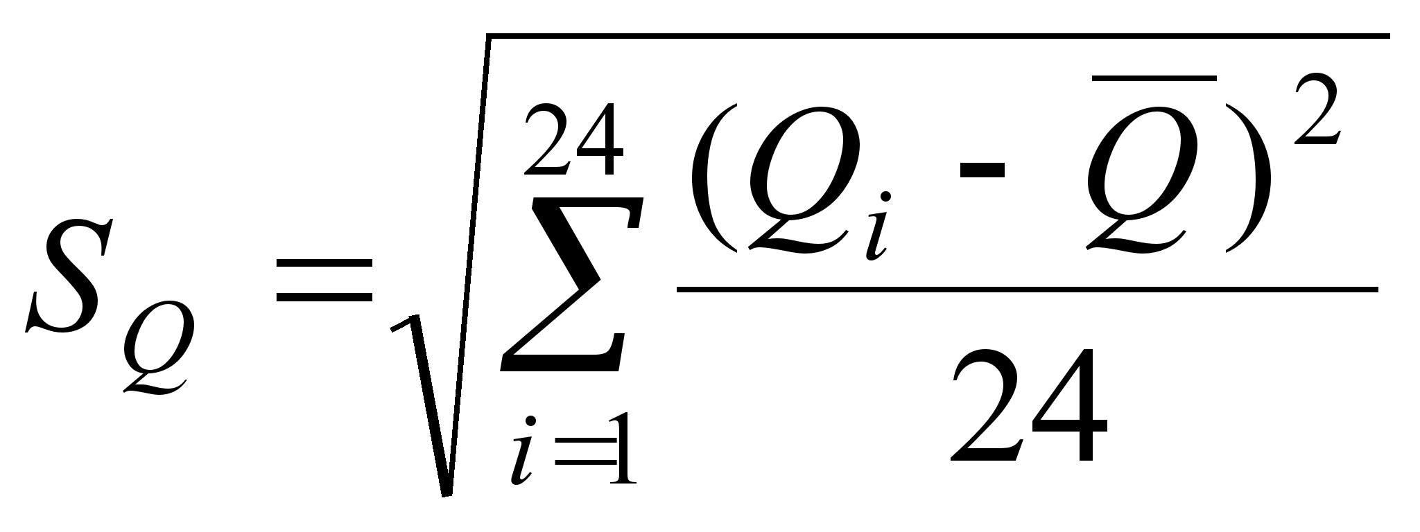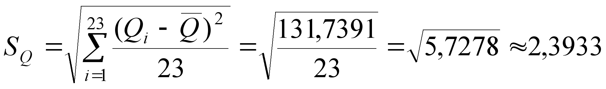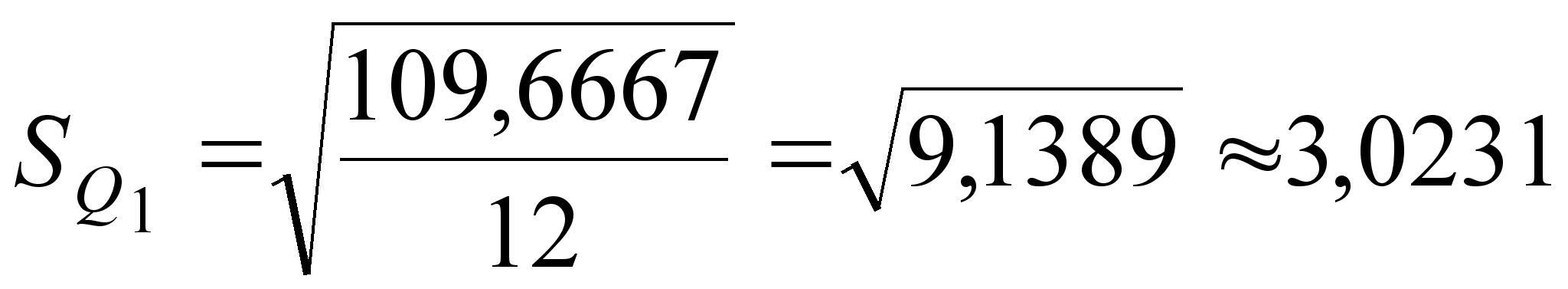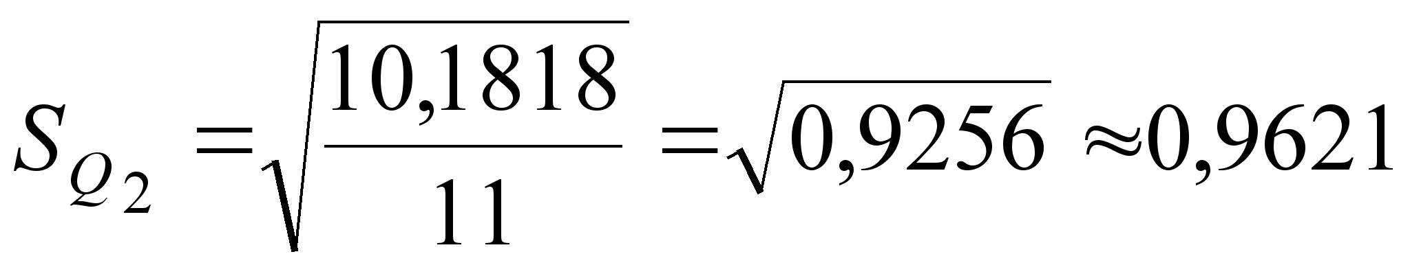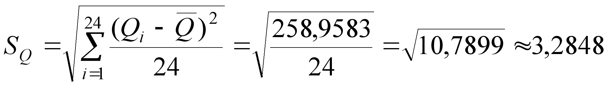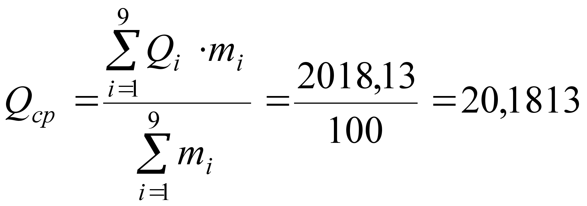 Результаты измерения Qi разбиваем на 9 групп через установленные интервалы с указанием абсолютной частоты (mi) появления результата измерения внутри каждого интервала. Данные располагаем для удобства расчетов в форме таблицы (таблица 12), заполняемой по мере проведения расчетов.