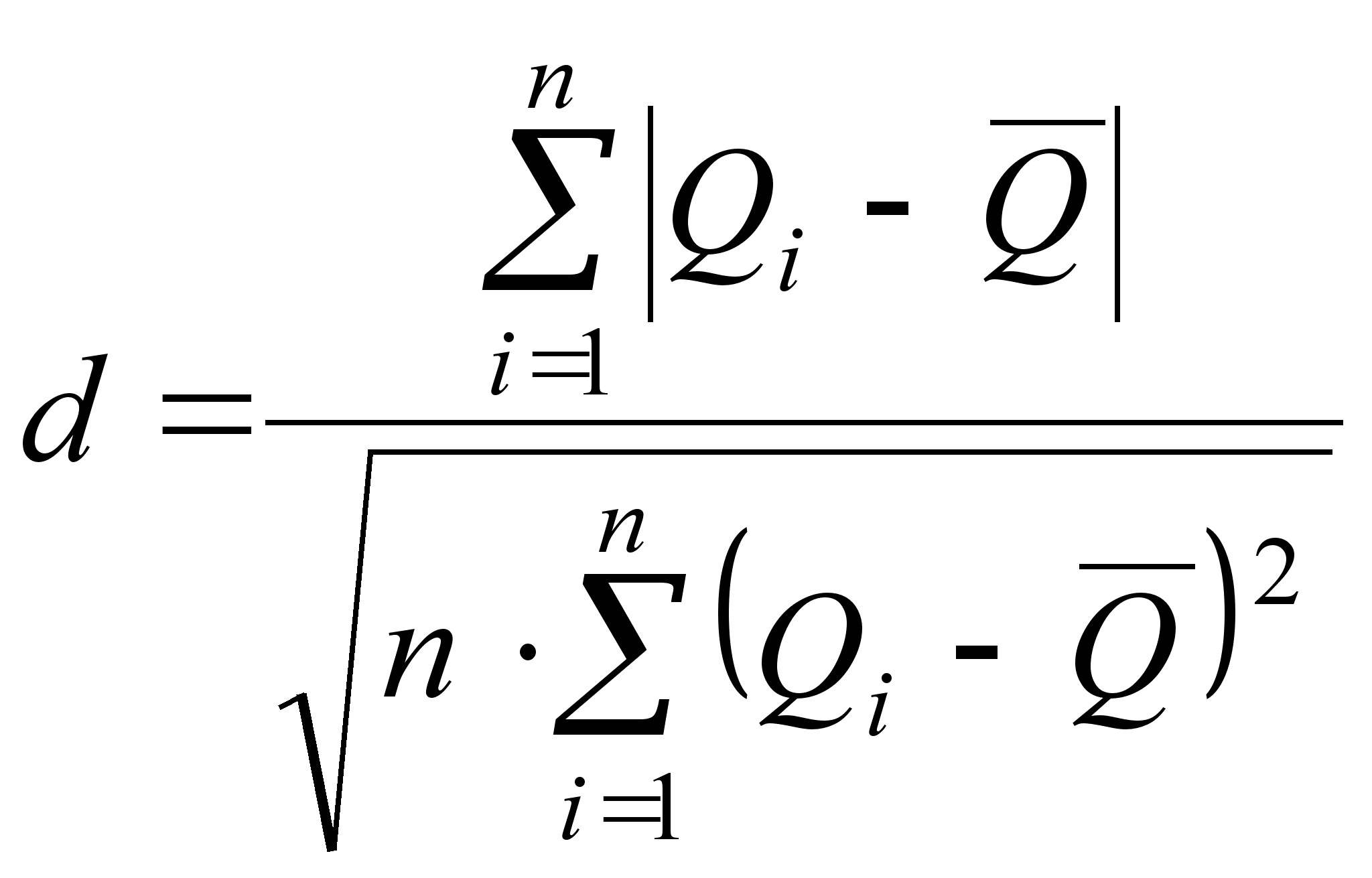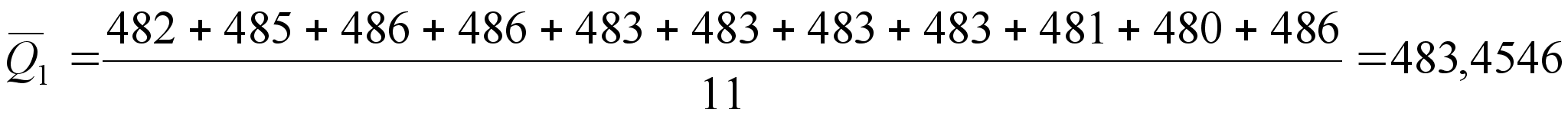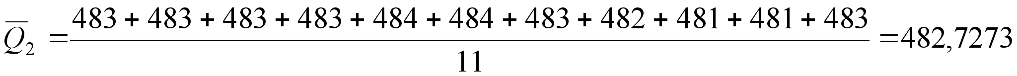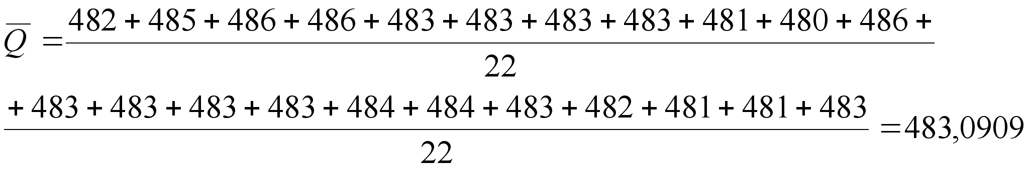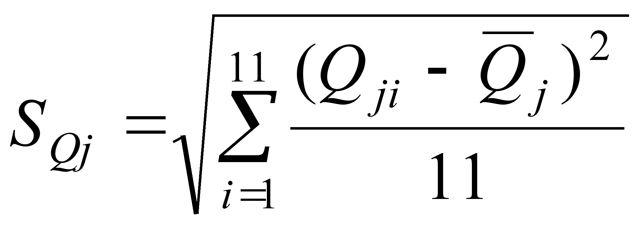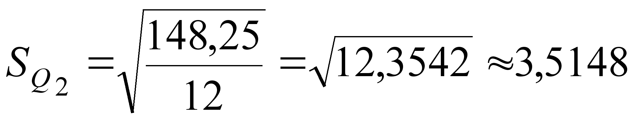 Результаты измерения Qi разбиваем на 9 групп через установленные интервалы с указанием абсолютной частоты (mi) появления результата измерения внутри каждого интервала. Данные располагаем для удобства расчетов в форме таблицы (таблица 12), заполняемой по мере проведения расчетов.