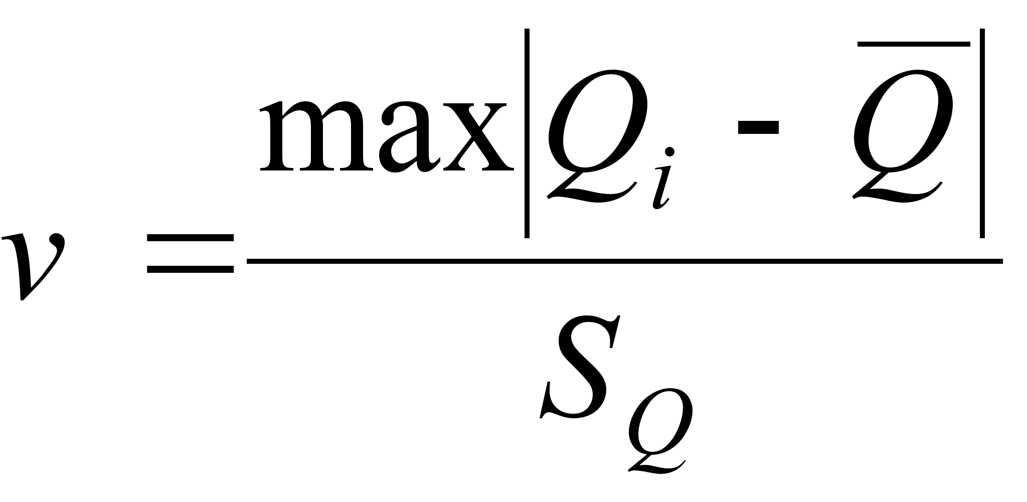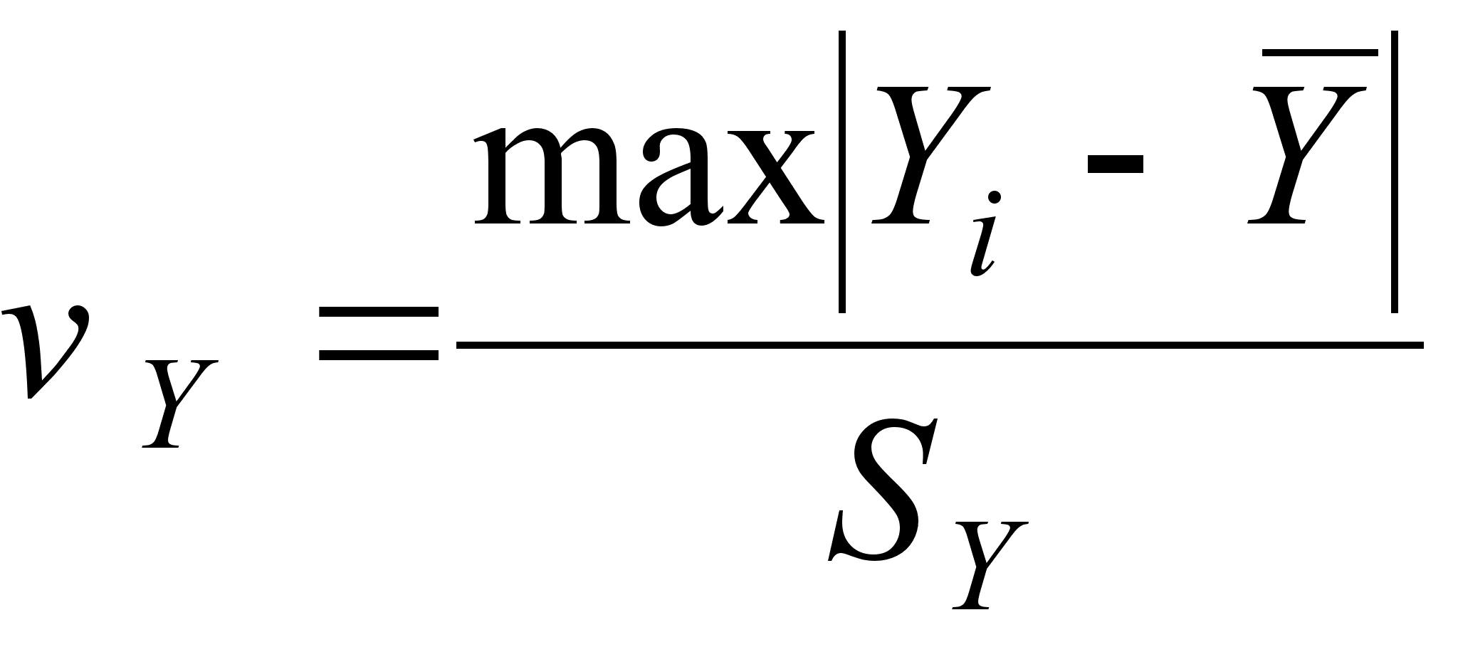 – вычисляем наибольшее по абсолютному значению нормированное отклонение