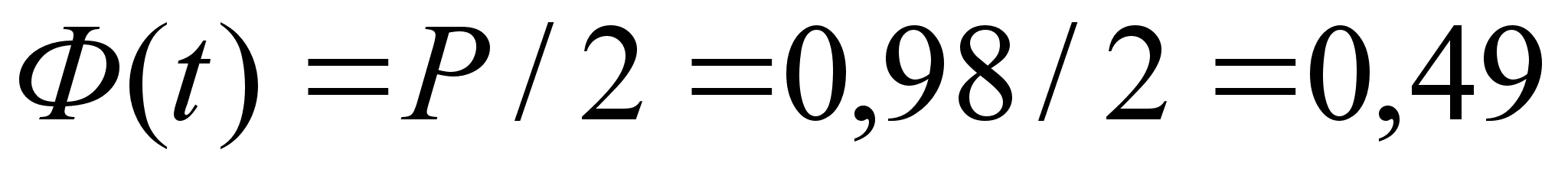 Определяем доверительный интервал для функции, для этого задаемся доверительной вероятностью P = 0,98 и из распределения Стьюдента находим t