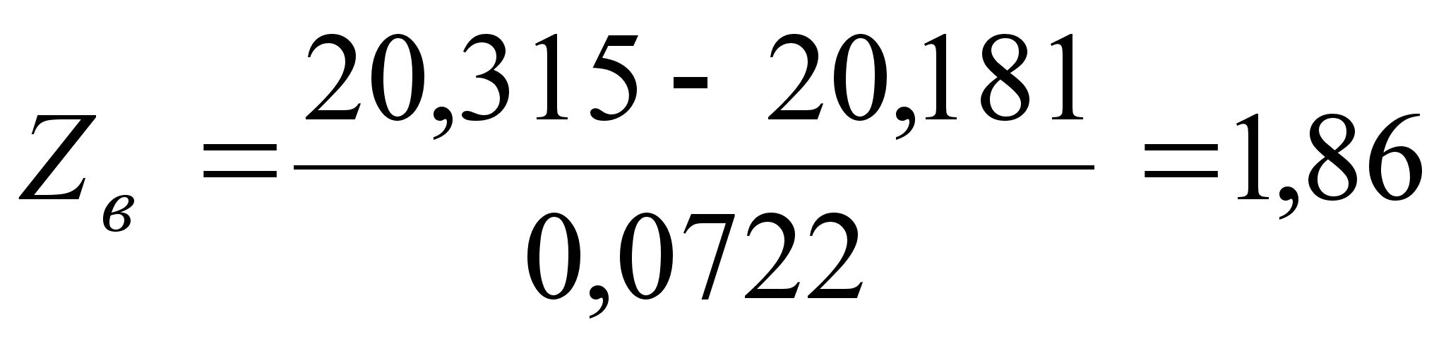 – по верхнему пределу, τв = [0,5–Ф(Zв)]·100%=[0,5–Ф(1,86)]·100%=3,14%