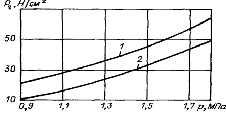 Рис 5.2. Зависимость удельной тангенциальной составляющей силы резания Р, от давления бруска р-