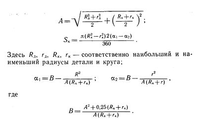 Выбор межцентрового расстояния А и расчет поверхности контакта 5к круга с деталью могут быть выпол-ныны с помощью следующих формул: