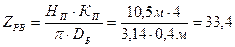 ZРВ – число рабочих витков для навивки половины рабочей длины каната;