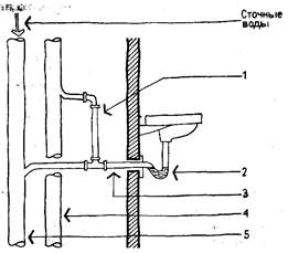Типичное решение устройства сифона и вентиляции арматуры 1— вентиляция сантехнического прибора; |
