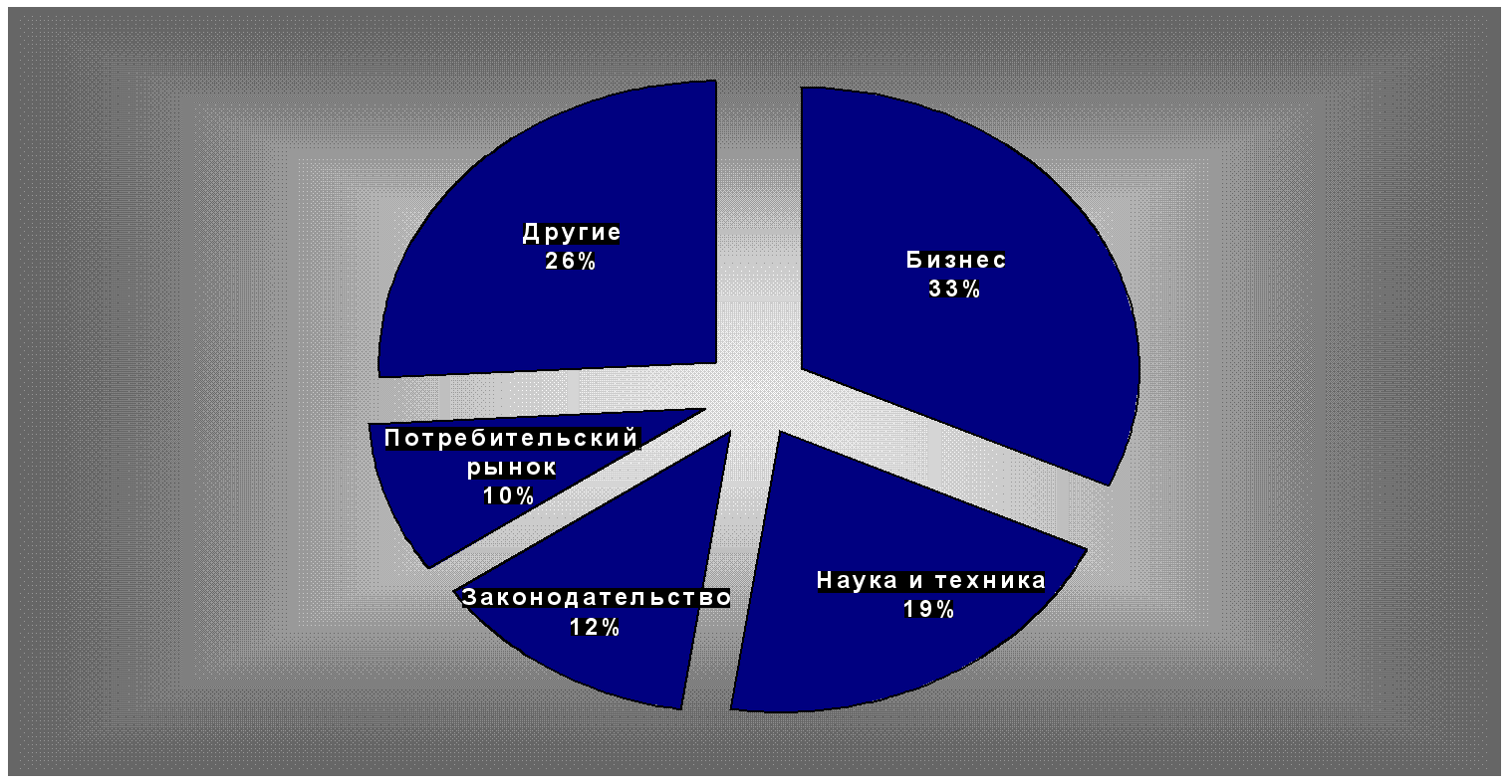 В РФ развитие информационной индустрии значительно отстает от зарубежных стран. А те БД, которые существуют, пока еще не могут конкурировать с БД западных компаний. И поэтому как правило онлайн доступ к нашим БД осуществляется через зарубежных продавцов. К примеру информацию о всех советских и российских патентах и аннотации большинства опубликованных в печати научных работ содержит французская компания QUESTEL – ORBIT. А полные тексты выпусков ИТАР-ТАСС, “Московские новости”, “The Moscow Times” представлены в американской LEXIS - NEXIS. Эти компании и еще несколько других и определяют на сегодняшний день правила игры на международном информационном рынке. Информационное пространство как бы имеет два полюса: один находится в США, другой в Западной Европе. В США безусловный лидер LEXIS - NEXIS с почти 1 млн. подписчиков и с годовым оборотом в 1 млрд. $. В Западной Европе ведущее место занимает QUESTEL-ORBIT, имеющая наивысший рейтинг среди информационных гигантов в области предоставления данных, связанных с интеллектуальной собственностью и бизнесом.