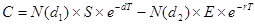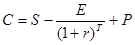 где S – курс акций, Е – цена исполнения опциона, P – цена опциона «пут», r – безрисковая процентная ставка, T – промежуток времени до даты истечения опциона, C – цена опциона «колл».