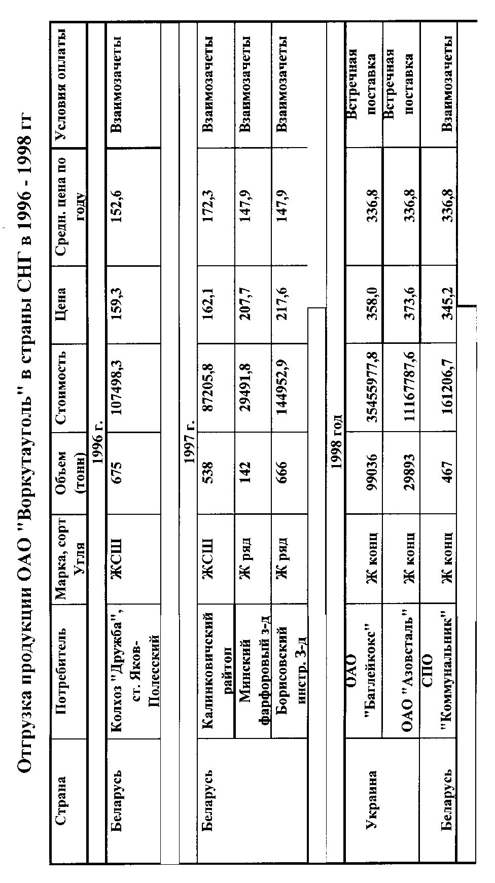 | Отгрузка продукции ОАО "Воркутауголь" в Украину в 1998 г | ||||||||||||