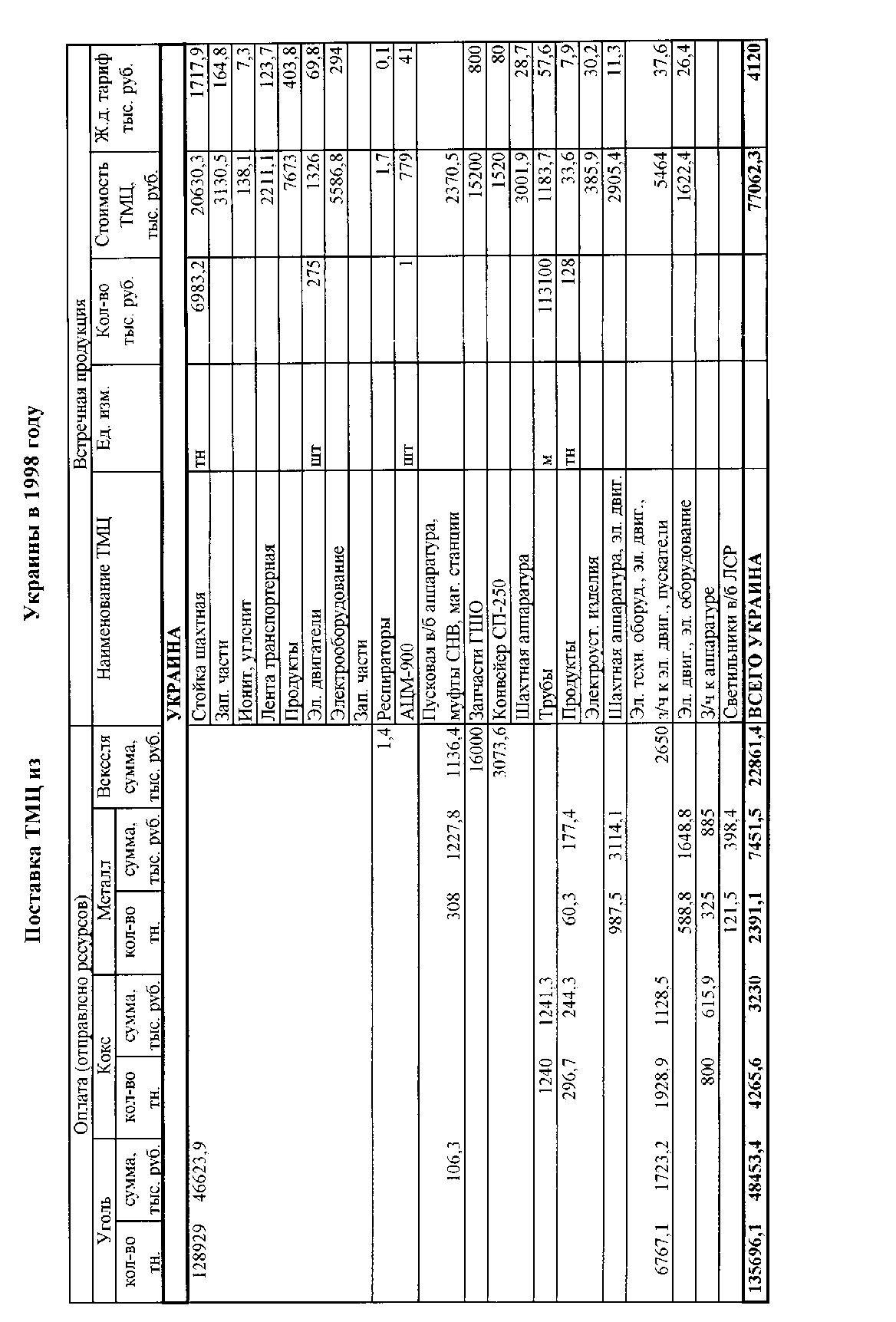 | Поставка ТМЦ из Украины в 1998 году в Печорский угольный бассейн | ||||||||||||