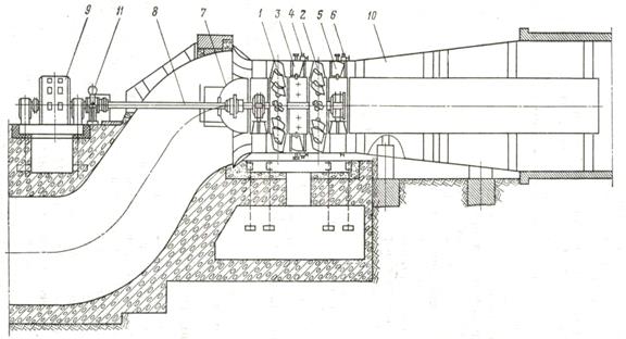 тродвигателя 9, диффузора 10 и тормоза 11.