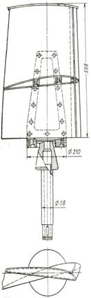 ной ванной для подшипников. Максимальная производительность вентилятора достигается при отрицательных углах установки лопаток, когда поток подкручивается навстречу вращению колеса. Режим работы регулируется изменением угла установки закрылков лопаток рабочего колеса.