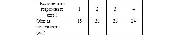 На сколько единиц возрастает полезность от потребления второго пирожного, третьего, четвертого?