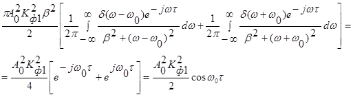 Корреляционная функция сигнала на выходе первого линейного фильтра, согласно (2.2), находится как обратное преобразование Фурье от энергетического спектра и вычисляется следующим образом: ![]()