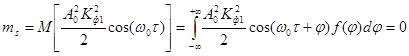 Поскольку случайный процесс на выходе первого линейного фильтра содержит квазидетерминированную составляющую, то пользоваться выражениями (2.3) и (2.4) для получения математического ожидания и дисперсии нельзя. Тогда учтем, что математическое ожидание суммы равно сумме математических ожиданий. Пользуясь выражением (2.3), получим математическое ожидание шумовой составляющей